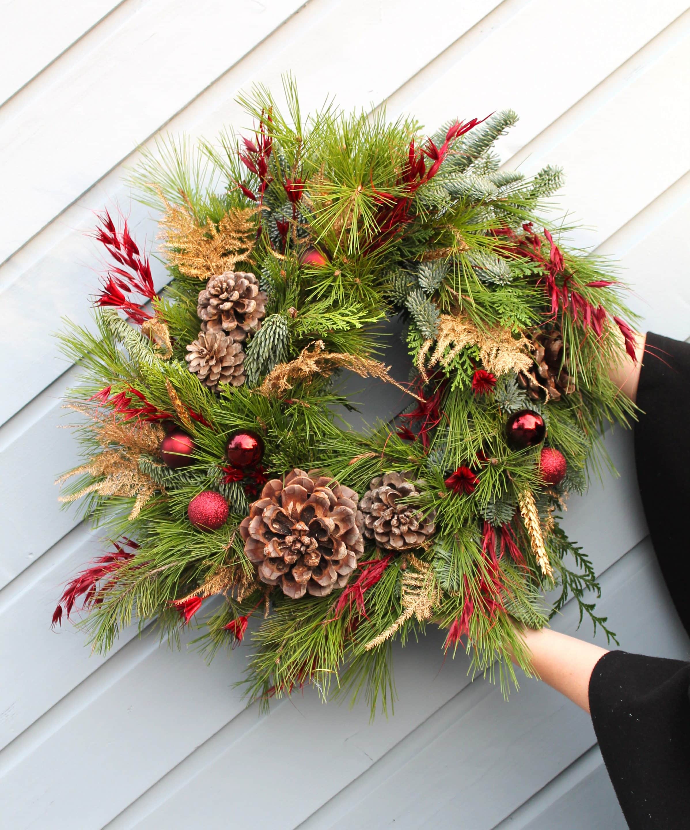 A l’atelier, vous apprendrez les techniques et les bons gestes pour créer votre couronne de porte pour Noël.